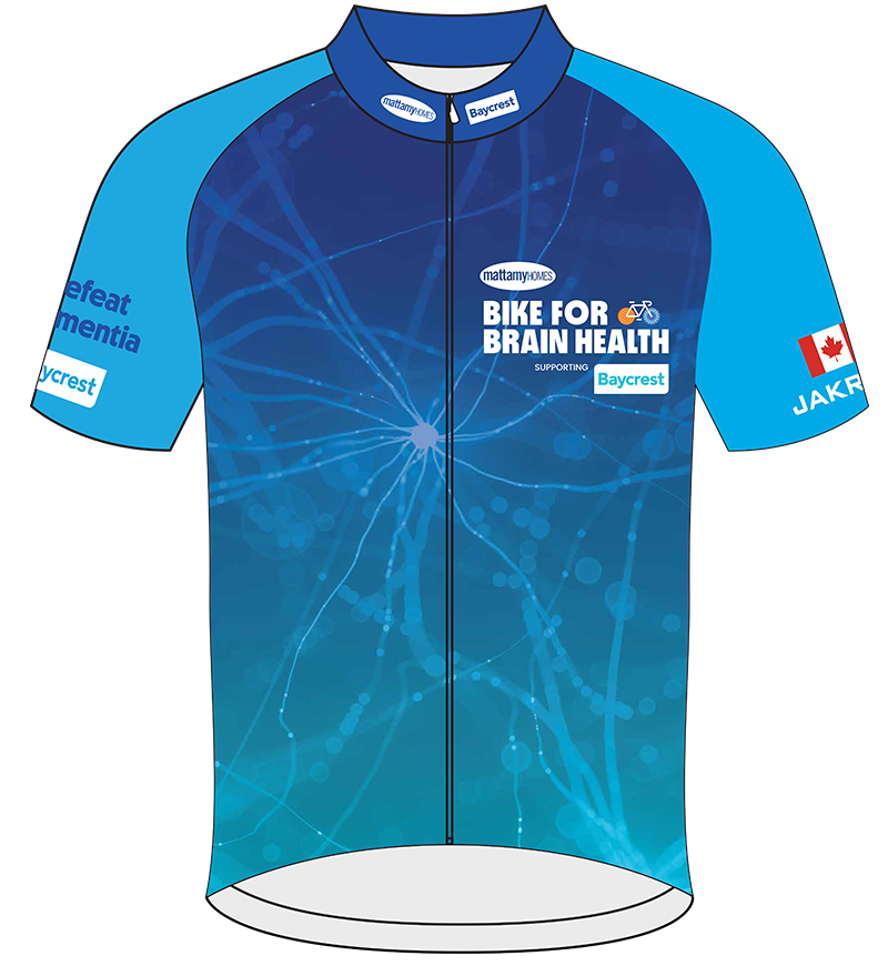 Riders who raise $1,000 or more earn the exclusive Brain Health Ambassador Jersey — a special recognition of your exceptional commitment to brain health research. Push your fundraising further and wear your achievement on event day. (2025 version is illustrated.)
